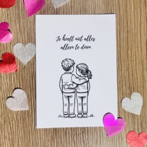 Deze kaart herinnert eraan dat groei vooral leuk wordt als je het samen doet – vol vertrouwen en nieuwsgierigheid op avontuur.