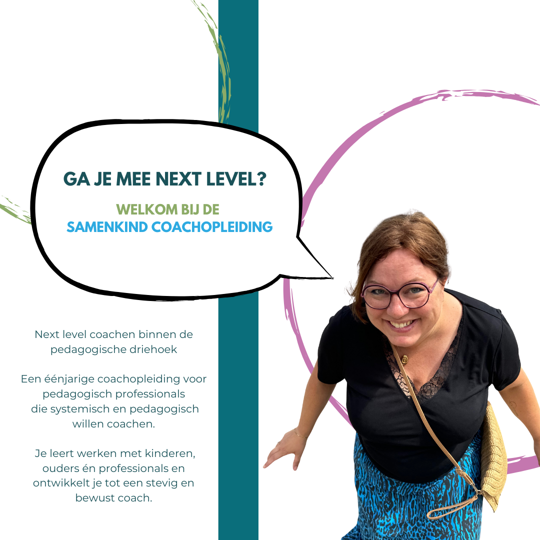 De Samenkind Coachopleiding is een éénjarige opleiding voor pedagogisch professionals die zich willen ontwikkelen tot een stevig, bewust en systemisch coach. Je leert coachen binnen de volledige pedagogische driehoek: het kind, de ouder en de pedagogisch professional.